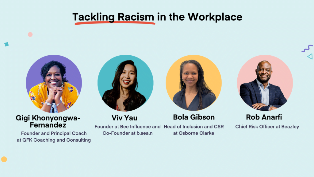 At our latest webinar we were joined by some amazing panellists who drew on their own lived experiences as people of colour and their professional careers in how they have helped to support and empower ethnic minority colleagues, ways they advise to educate and engage people in workshops and training on anti-racism, and how to approach allegations of racism or deal with acts of racism in the workplace if you experience or witness it.
