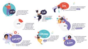 Below are some statistics regarding discrimination based on eight of the nine above protected characteristics to give you an idea of how prevalent they are. Statistics are hard to find for marital and civil partnership discrimination in the workplace and few cases are known, but you can read more about it here.